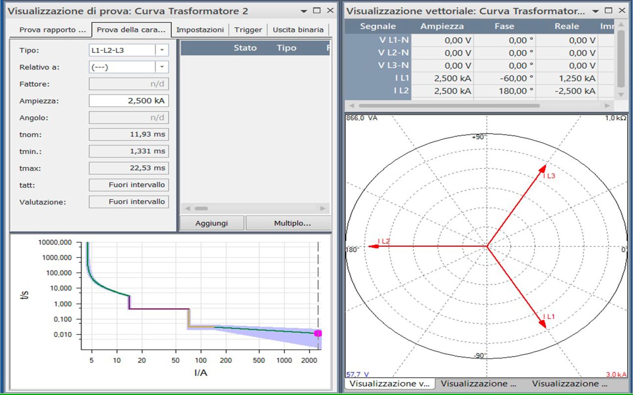 - Rilevazione tempi e correnti di sgancio su relè MT/BT tramite cassetta prova relè